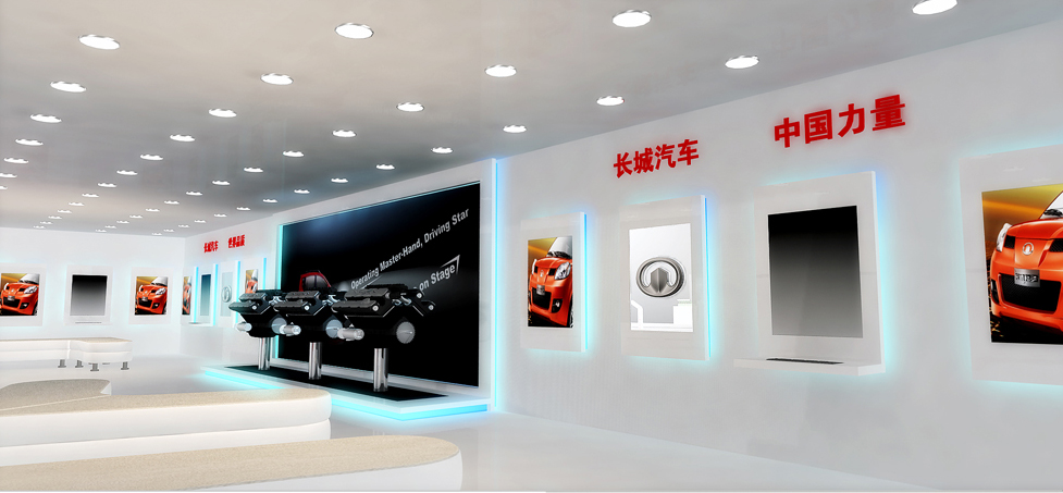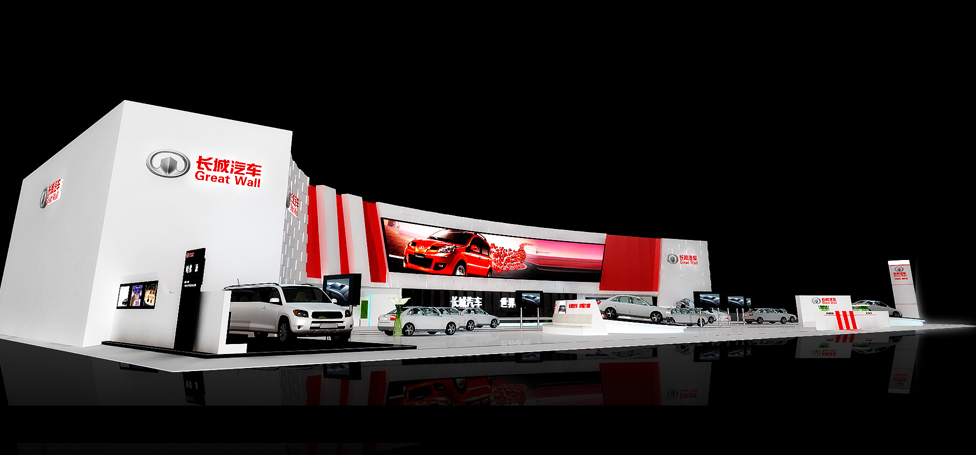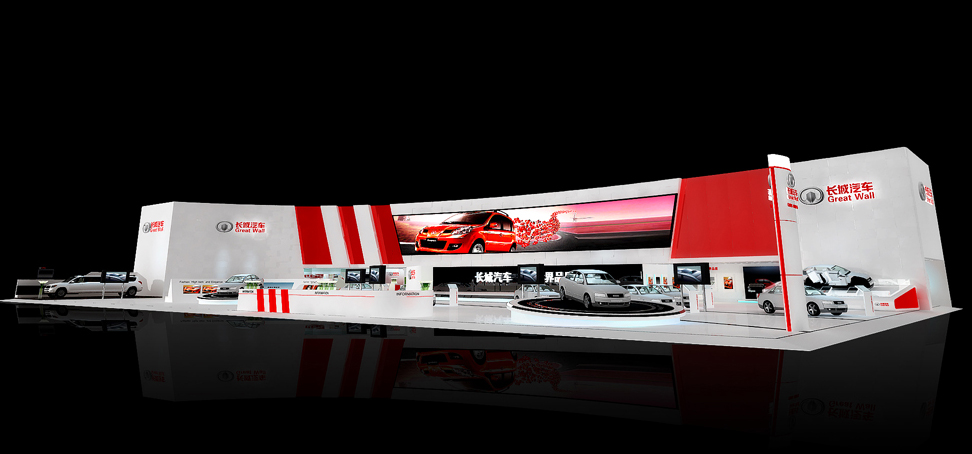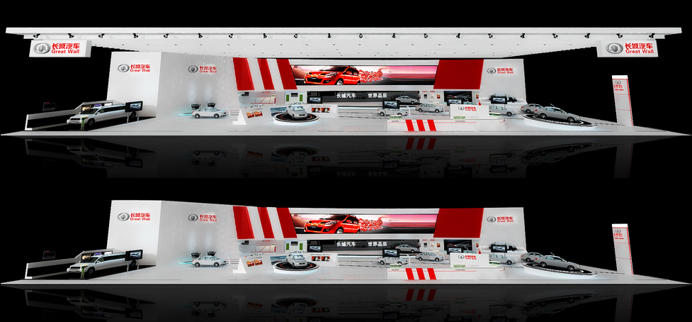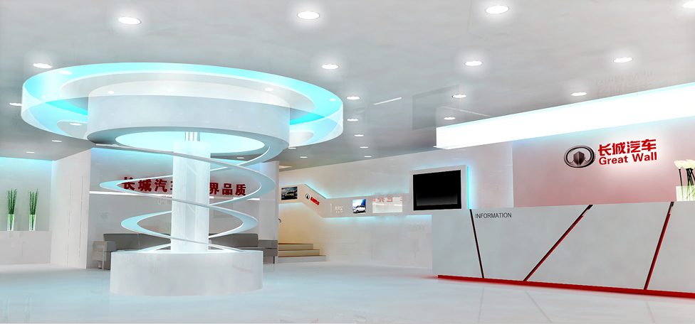 契合長城汽車的品牌形象和產(chǎn)品特性,采用矩形結(jié)構(gòu),再搭配燈具燈光的效果,襯托出展位高端、時(shí)尚的氛圍,突出一種現(xiàn)代、大氣的時(shí)尚品味。