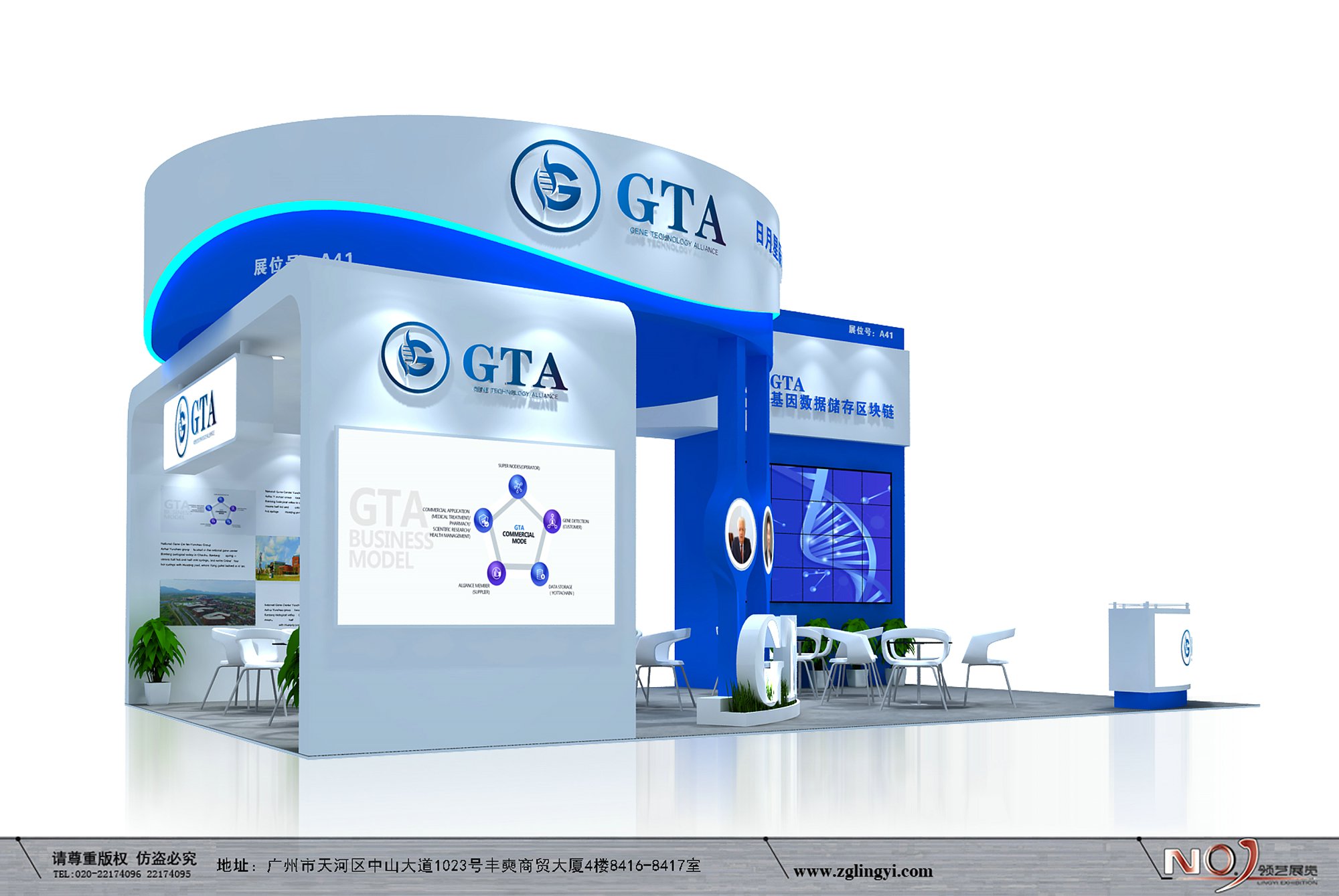 契合GTA的品牌形象和產(chǎn)品特性,采用弧形結(jié)構(gòu),再搭配燈具燈光的效果,襯托出展位大氣、豪華的氛圍,突出一種簡約、時(shí)尚的品味。
