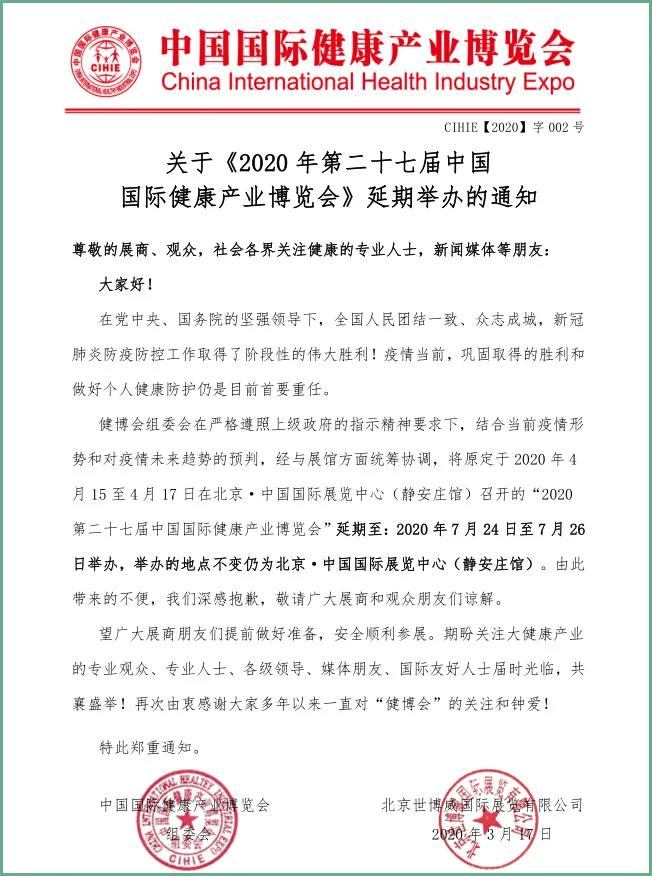 根據(jù)健博會(huì)設(shè)計(jì)搭建公司領(lǐng)藝展覽了解到,2020CIHIE·健博會(huì)延期至7月24—26日舉辦。如需健博會(huì)設(shè)計(jì)請(qǐng)聯(lián)系領(lǐng)藝展覽,希望我們能在健博會(huì)搭建上為您添磚加瓦,祝各位朋友收獲多多,滿載而歸!