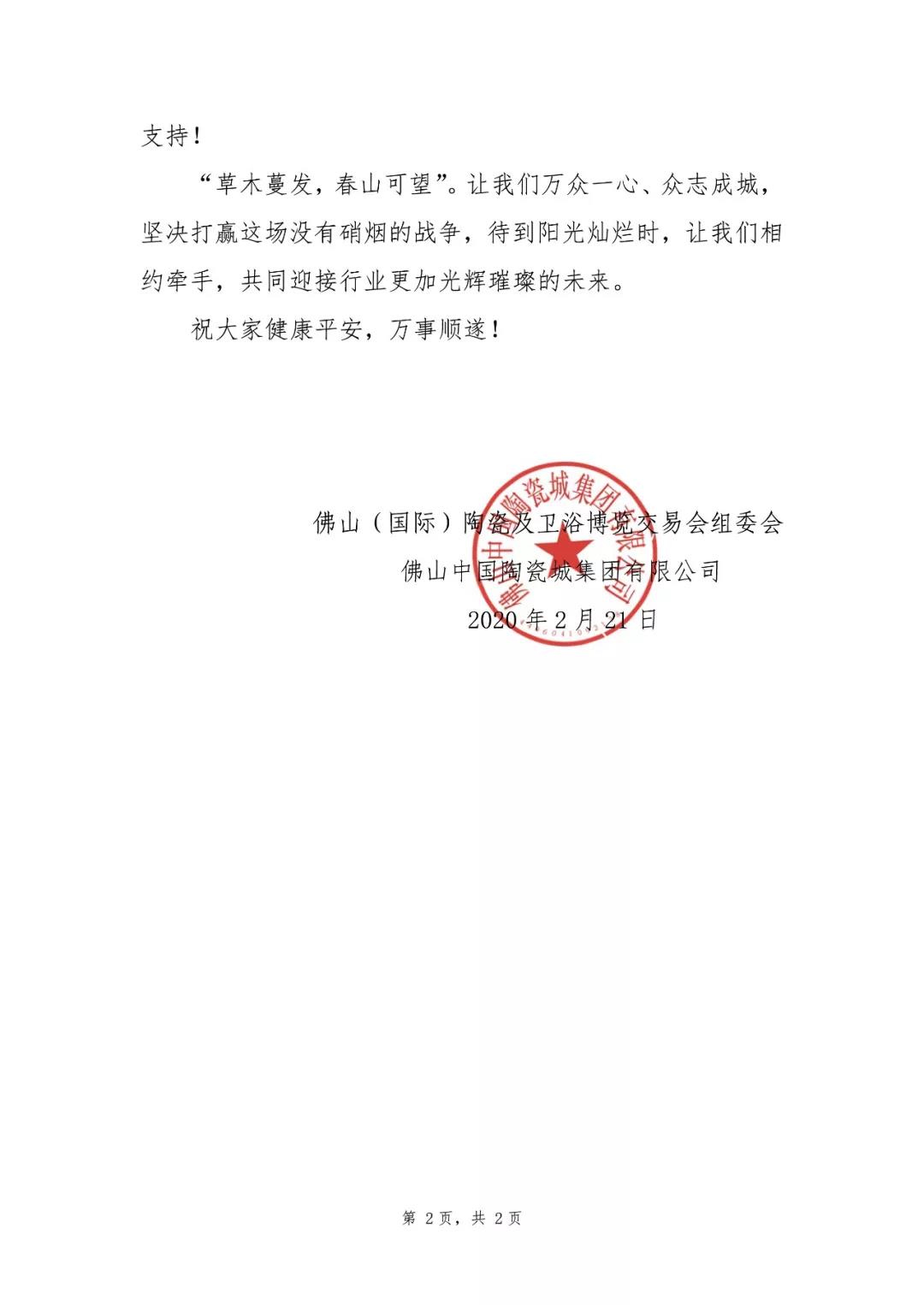 根據(jù)陶博會陶瓷展設(shè)計搭建公司領(lǐng)藝展覽了解到,受新型冠狀病毒疫情防控影響。為全力做好新型冠狀病毒感染肺炎疫情防控工作,為了響應(yīng)及配合疫情防控工作,確保各參展商及觀眾的健康安全,陶博會組委會決定將原定于2020年4月18-21日舉辦的第35屆佛山(國際)陶瓷及衛(wèi)浴博覽交易會將延期舉辦。有關(guān)展會的最新消息,請關(guān)注展會官網(wǎng):www.cerambath.org。如需陶博會設(shè)計請聯(lián)系領(lǐng)藝展覽,希望我們能在陶博會搭建上為您添磚加瓦,祝各位朋友收獲多多,滿載而歸!